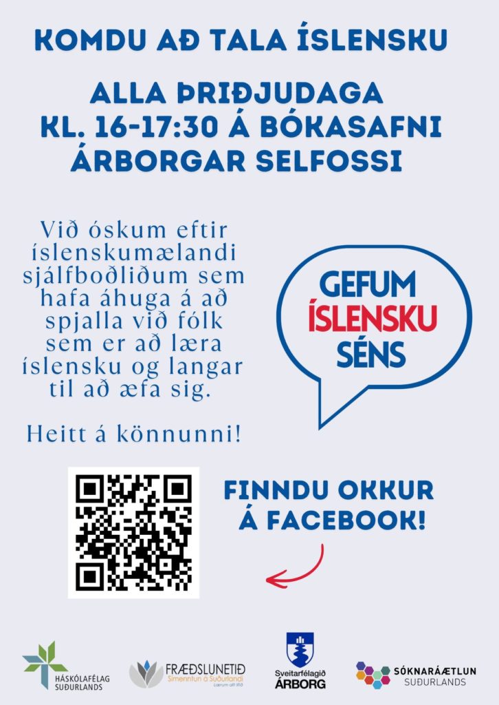 Viltu æfa þig í íslensku? Á þriðjudögum kl. 16:00-17:30 hittumst við á Bókasafninu á Selfossi, Austurvegur 2 og spjöllum saman. Æfðu þig í íslensku og hittu fleiri sem eru líka […]